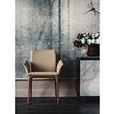 Sedia con struttura in faggio naturale, tinto noce Canaletto, wenghè, bianco o nero opaco. Rivestimento in pelle come da campionario. Non sfoderabile.